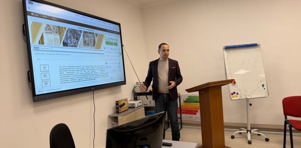 Բանախոսը ներկայացրեց Հայաստանի ազգային գրադարանի առցանց շտեմարանները, դրանց հնարավորությունները և կիրառականությունը գիտական հետազոտությունների իրականացման գործընթացում։